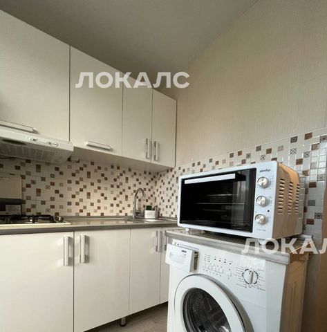 Кухня укомплектована гарнитуром, холодильником, тв, СВЧ, духовым шкафом, мультиварка, чайником. Есть стиральная машина. Выход на застеклённый балкон.