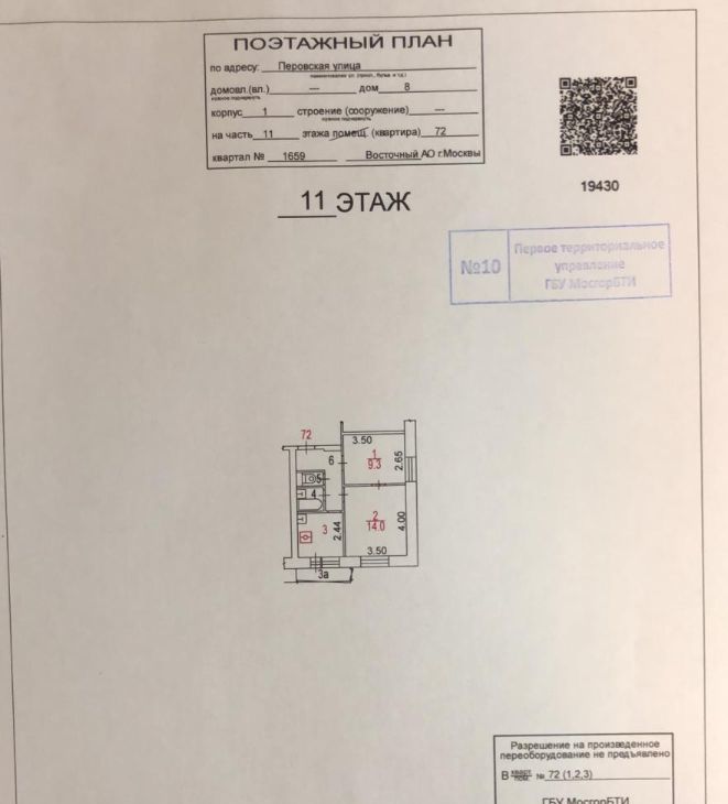 2-к кв. Москва Перовская ул., 8К1 (37.0 м²)