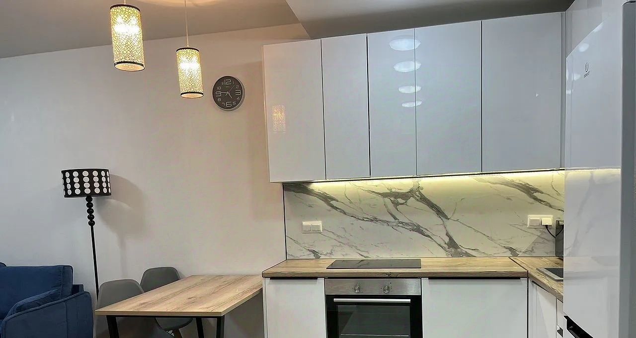 В квартире есть всё необходимое для комфортной жизни: современная кухня с мебелью и техникой, включая холодильник, посудомоечную и стиральную машины, а также кондиционер для поддержания комфортного климата. Ванная комната оборудована совмещённым санузлом.