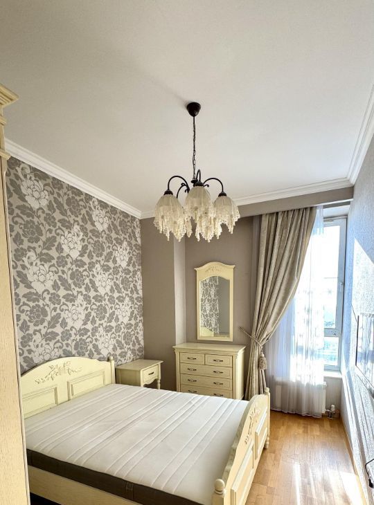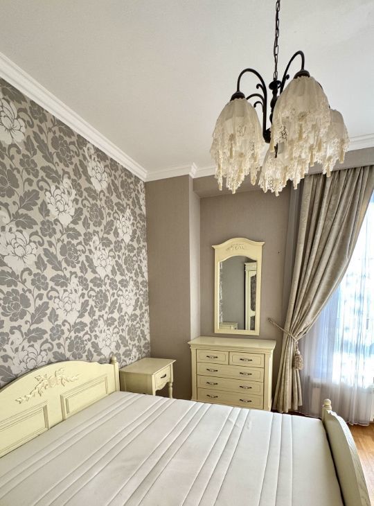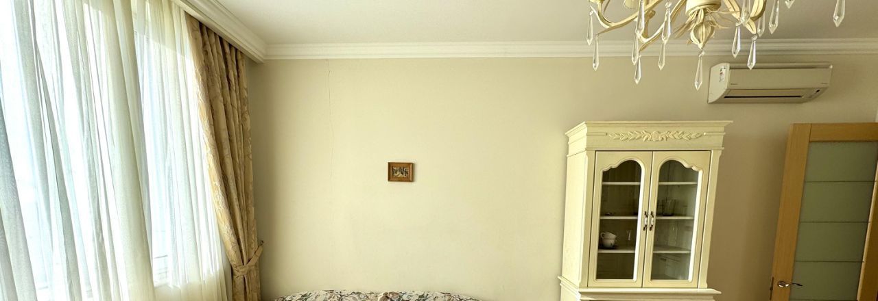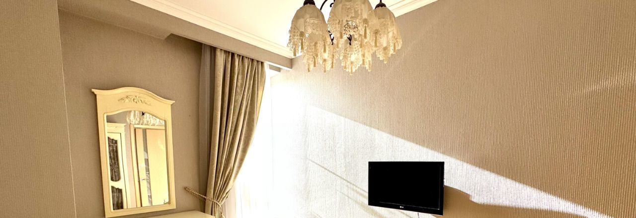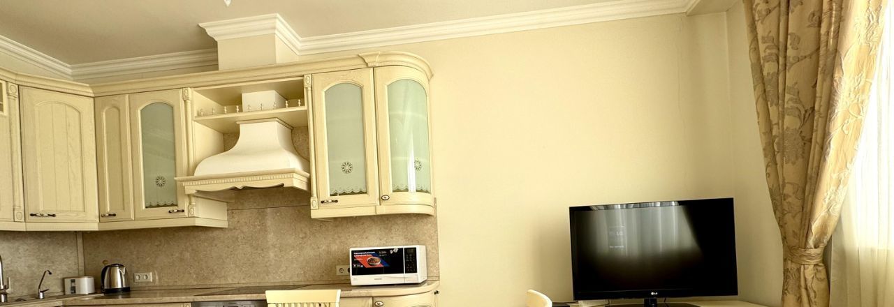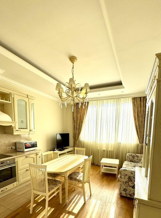 В квартире есть всё необходимое для комфортного проживания. Просторная кухня площадью 22 кв. м оснащена современной мебелью и техникой, включая кондиционер, холодильник, посудомоечную машину и телевизор. В комнате также предусмотрена мебель, а в ванной комнате установлена ванна. Совмещённый санузел выполнен в современном стиле. Окна выходят на улицу, поэтому в квартире всегда светло и уютно.