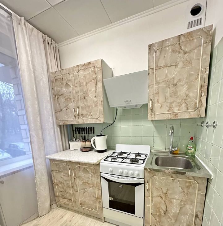 Квартира с косметическим ремонтом, что позволяет сразу заехать и жить. В кухне с площадью 5.4 кв. м есть вся необходимая мебель. В комнате также имеется мебель, что делает проживание более комфортным. Из техники в квартире есть холодильник, телевизор и стиральная машина. Ванная комната оснащена ванной и отдельным санузлом.