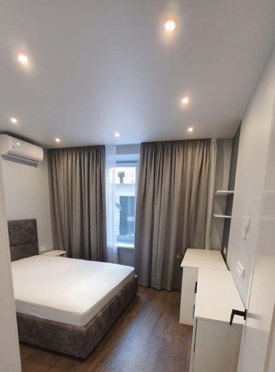 Добротный современный кирпичный дом, тихий зеленый район, рядом с метро, очень высокий первый этаж, абсолютно новый дизайнерский современный ремонт, большие пластиковые окна, застекленная, с теплыми полами, лоджия, оборудованная под кабинет, просторная гостиная, совмещенный санузел с теплым полом, с душевой кабиной и стиральной машиной. Кухня оборудована всей необходимой новой техникой, включая посудомоечную машину, микроволновку, плиту, холодильник, фильтры для воды и т.д. Большая прихожая с необходимыми местами хранения. Телевидение, интернет, в комнатах кондиционеры.