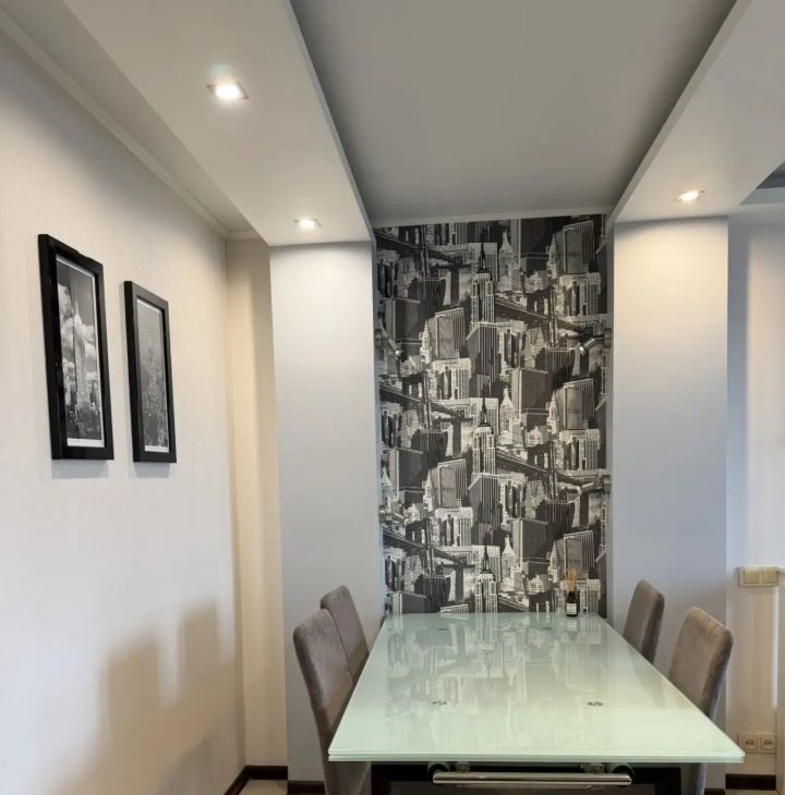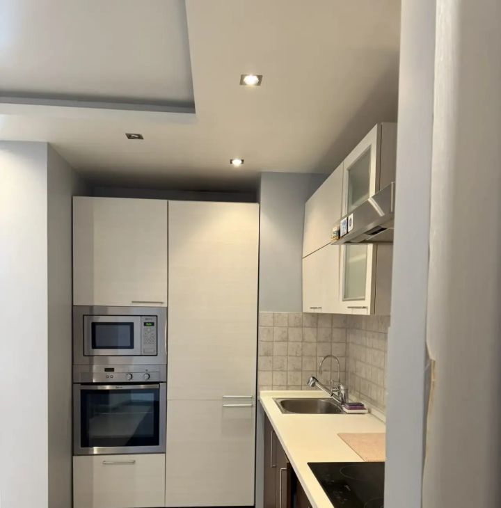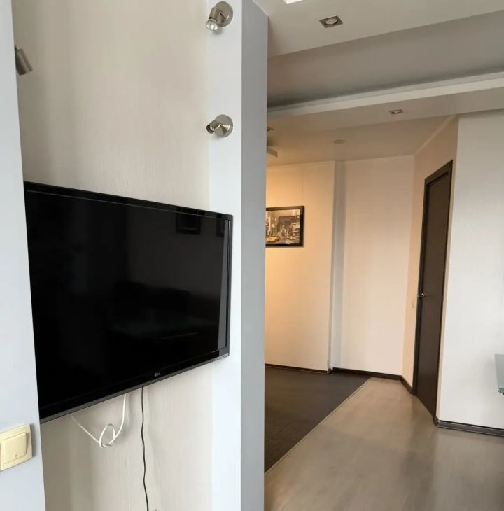 Квартира с дизайнерским ремонтом, в которой есть всё необходимое для комфортного проживания. В комнатах и на кухне есть мебель. В ванной комнате установлена душевая кабина. Из техники в наличии кондиционер, холодильник, посудомоечная машина, телевизор и стиральная машина. Окна выходят во двор, поэтому в квартире всегда тихо и уютно. Проведены интернет и телефон.