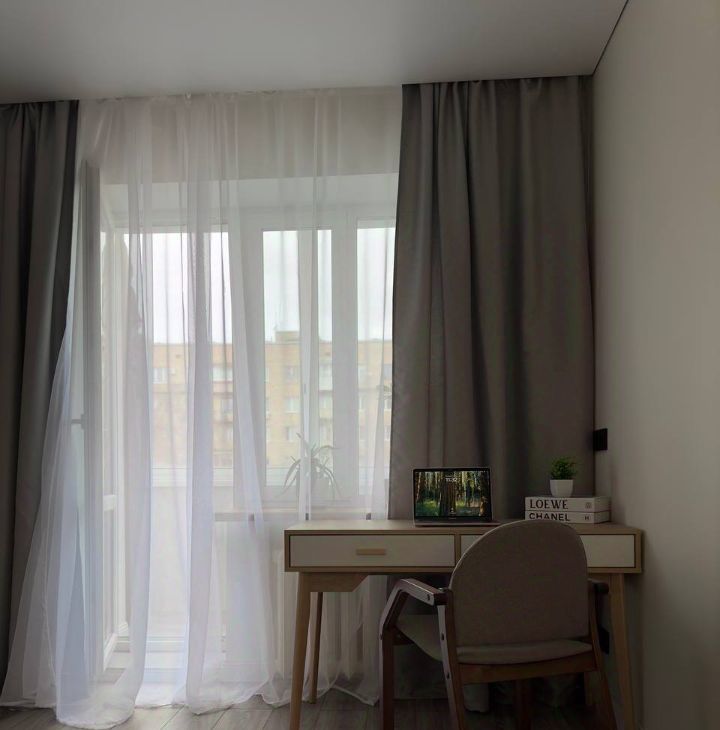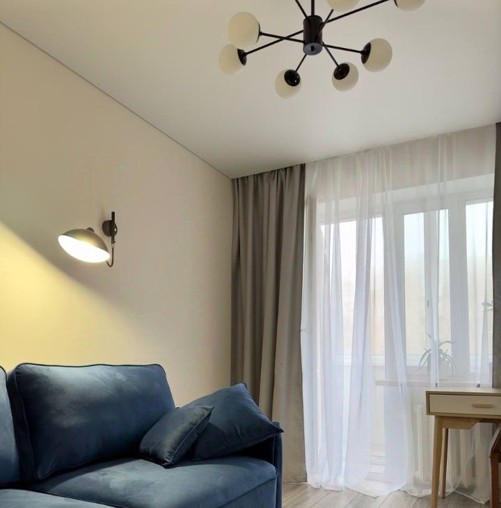 комната с раскладным диваном, рабочей зоной и балконом