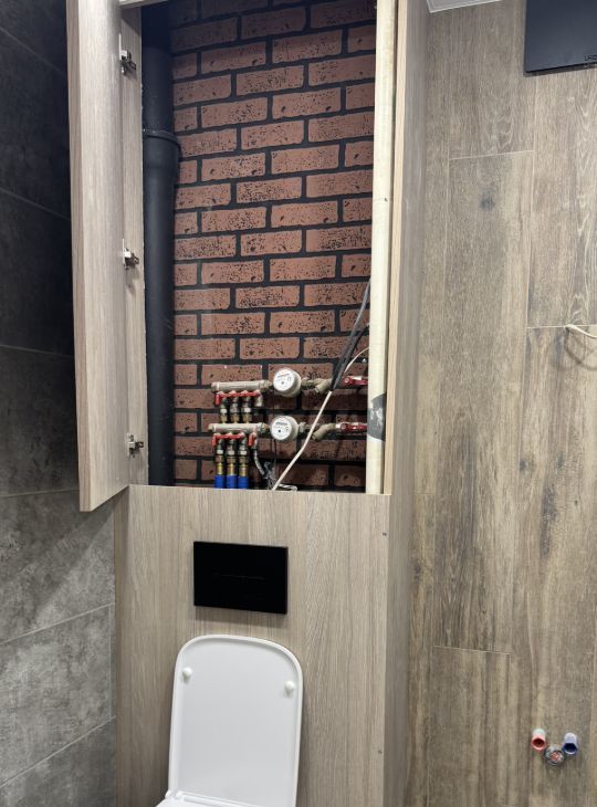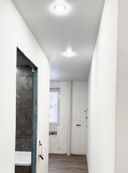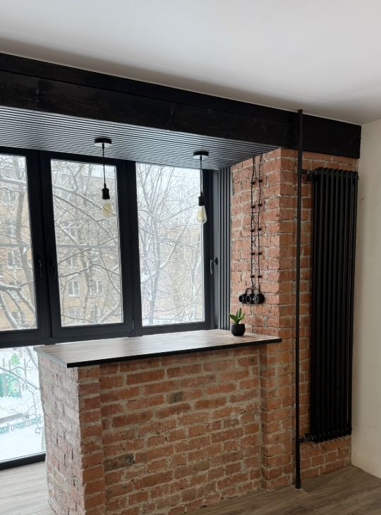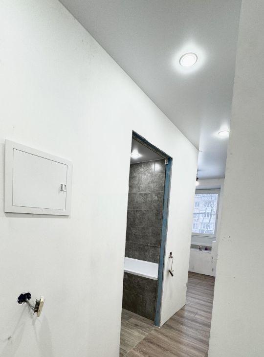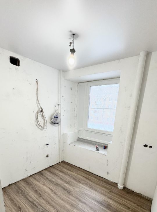 Ремонт делался под себя. Вся проводка по квартире проведена новая, новые трубы канализации, водопроводные трубы rehau ,все окна в том числе "балкон" фирмы rehau с двухкамерными пакетами, которые предоставляют высокое качество теплоизоляции и звукоизоляции, установлен большой радиатор в стиле лофт в большой комнате, установлены натяжные потолки, ламинат, стены выровнены.