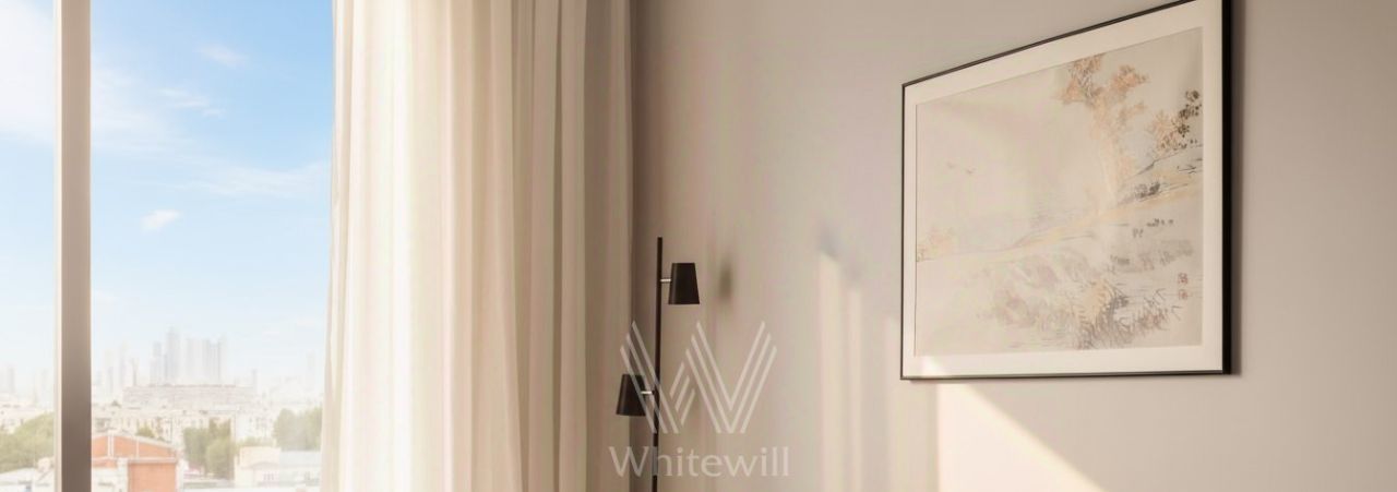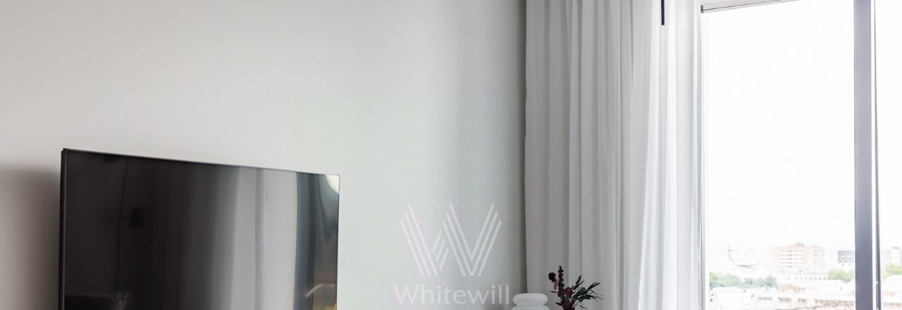 Апартаменты с 1-й спальней общей площадью 43 м² в комплексе премиум-класса "Чкалов" на 9-м этаже. Выполнена дизайнерская отделка в современном стиле в светлых тонах. Благодаря панорамным окнам пространство наполнено естественным светом. Спланирована кухня-гостиная с обеденной зоной, спальня, ванная комната, прихожая. Апартаменты полностью меблированы и оборудованы бытовой техникой, установлена система приточной вентиляции и кондиционирование. Из окон открывается вид на город в сторону делового центра "Москва-Сити".