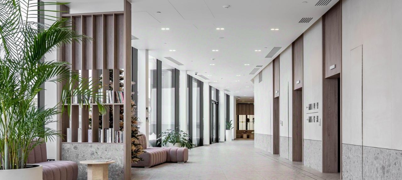 В доме предусмотрены бесшумные скоростные лифты Schindler, подземный паркинг, современные инженерные системы: центральное кондиционирование, приточновытяжная вентиляция, умный дом и качественная очистка воздуха и воды.