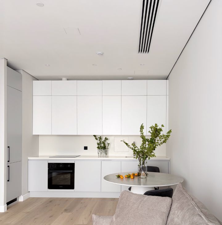 Система кондиционирования во всех помещениях, а также теплые полы.