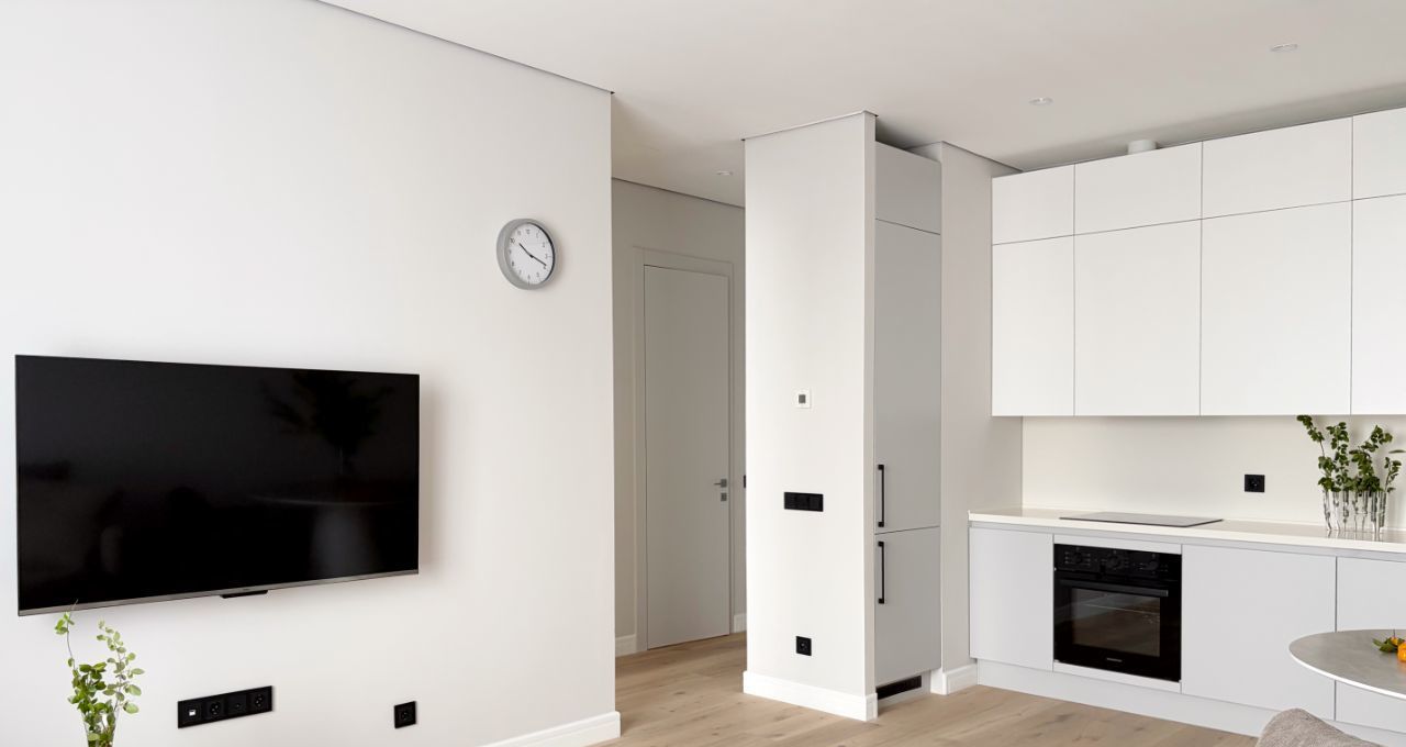 Бытовая техника: посудомоечная машина, стиральная машина, холодильник, вытяжка, варочная панель, духовой шкаф, телевизор, электрический чайник, микроволновая печь, утюг, гладильная доска а так же все необходимое для комфортного проживания, включая постельное белье и посуду.