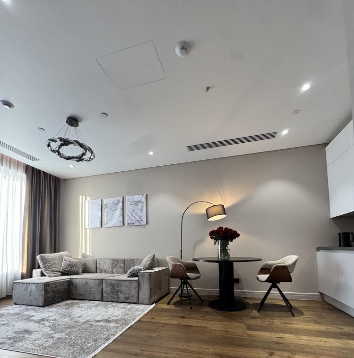 - Ремонт премиум-класса: итальянские материалы, шумоизоляция, система климат-контроля, видеодомофон.