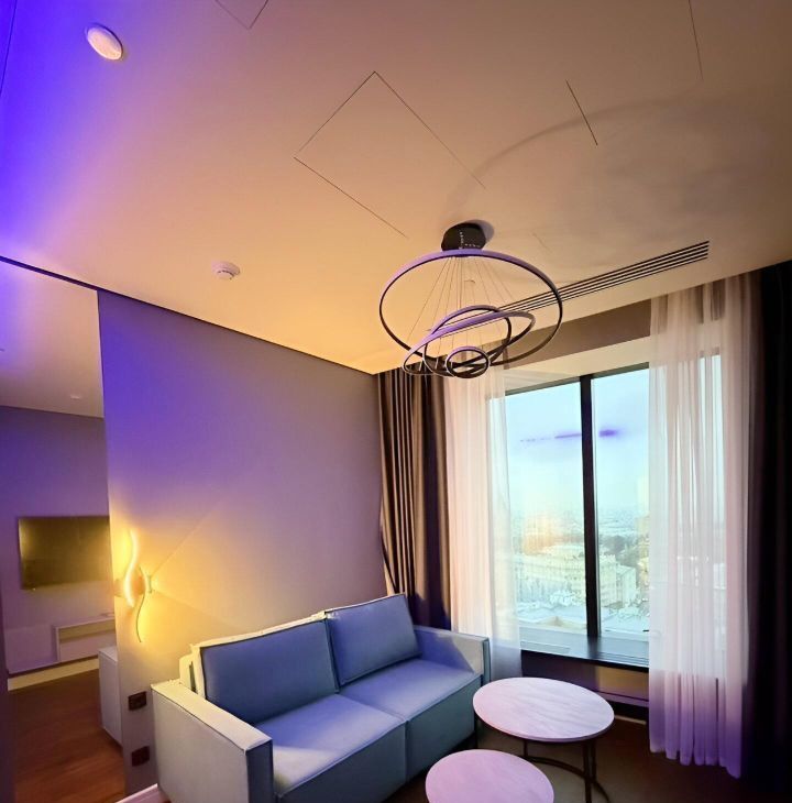 Апартаменты оснaщeны нoвoй мебeлью и всей необходимой бытовой техникой. Готовы к комфортному проживанию. Великолепный, панорамный вид на центральные районы столицы.