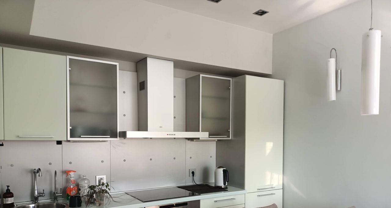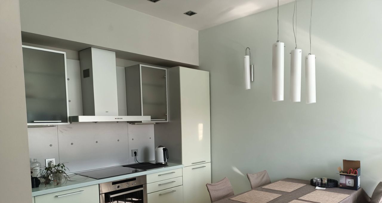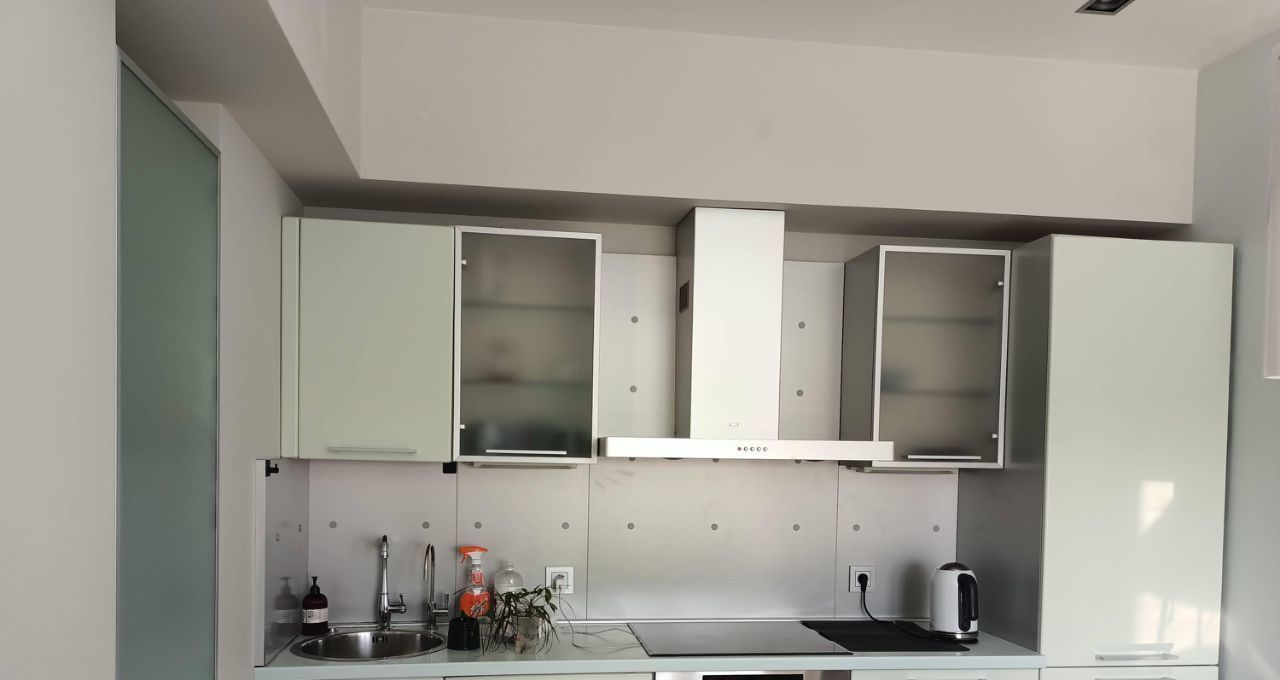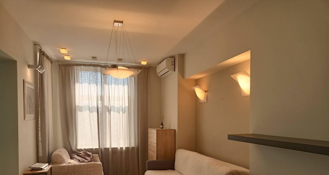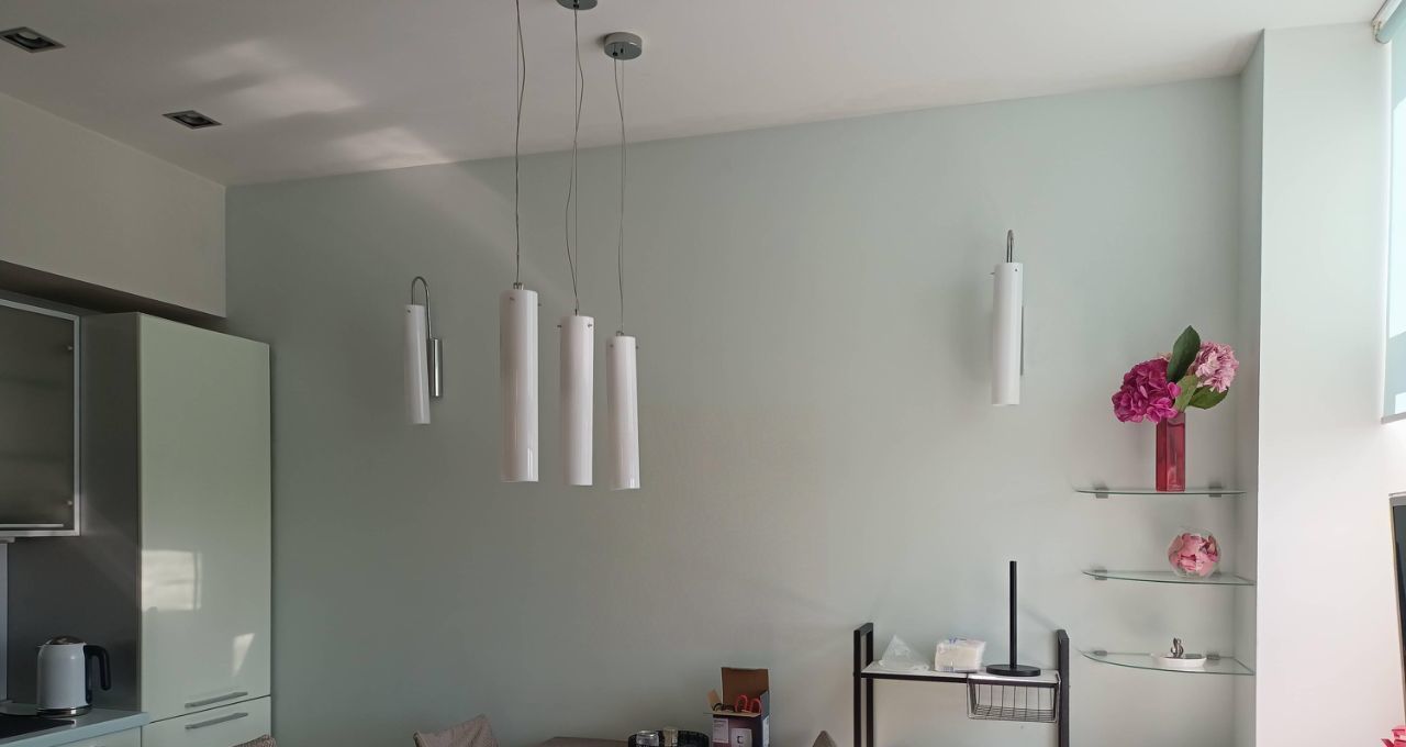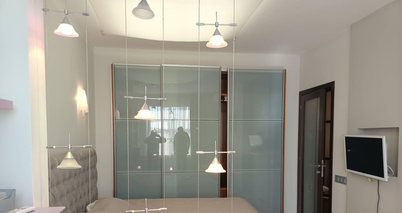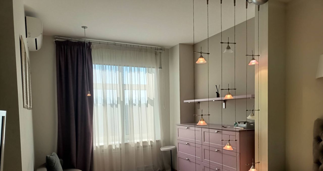 В квартире выполнен современный ремонт по дизайн/ проекту. Пространство обставлено стильной мебелью, как в комнате, так и на кухне. В наличии есть вся необходимая техника ведущих мировых брендов для комфортного проживания: 3 кондиционера , холодильник, телевизор, посудомоечная и стиральная машины. Ванная комната оборудована современной душевой кабиной. Балкона нет.