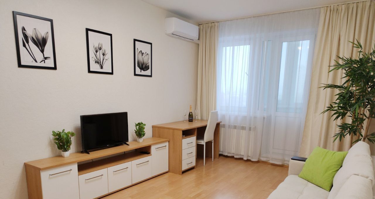 В квартире есть вся необходимая мебель, полностью оборудованная кухня, стиральная машина, кровать с ортопедические матрасом, двуспальный диван, письменный стол для учебы или удаленной работы, TV, Интернет, вместительный встроенный шкаф, кладовка и утеплённыей балкон, кондиционер.