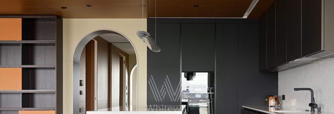 Спланирована кухня-гостиная 60 м² с диванной зоной у биокамина и обеденной зоной. Спальня со своим санузлом с ванной и душем. Прихожая с гостевым санузлом, большое количество встроенных шкафов. Кухонный остров выполнен из натурального камня, установлена встроенная техника Smeg, винный шкаф. С высоты 18 этажа открываются живописные виды на город и деловой центр "Москва-Сити".