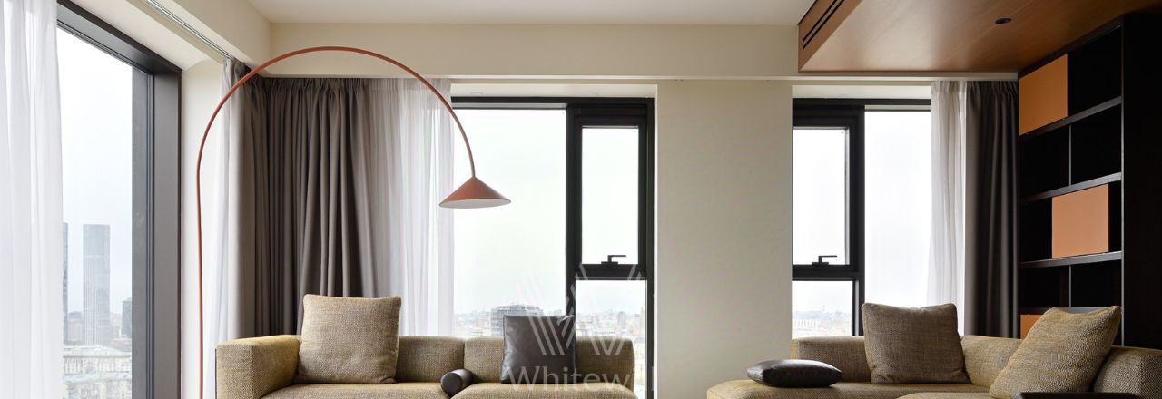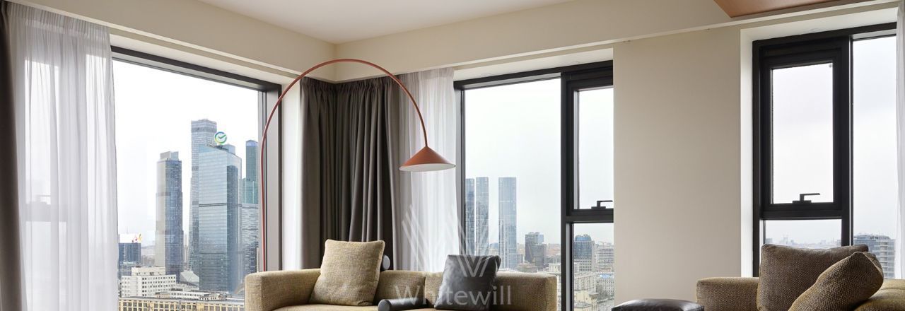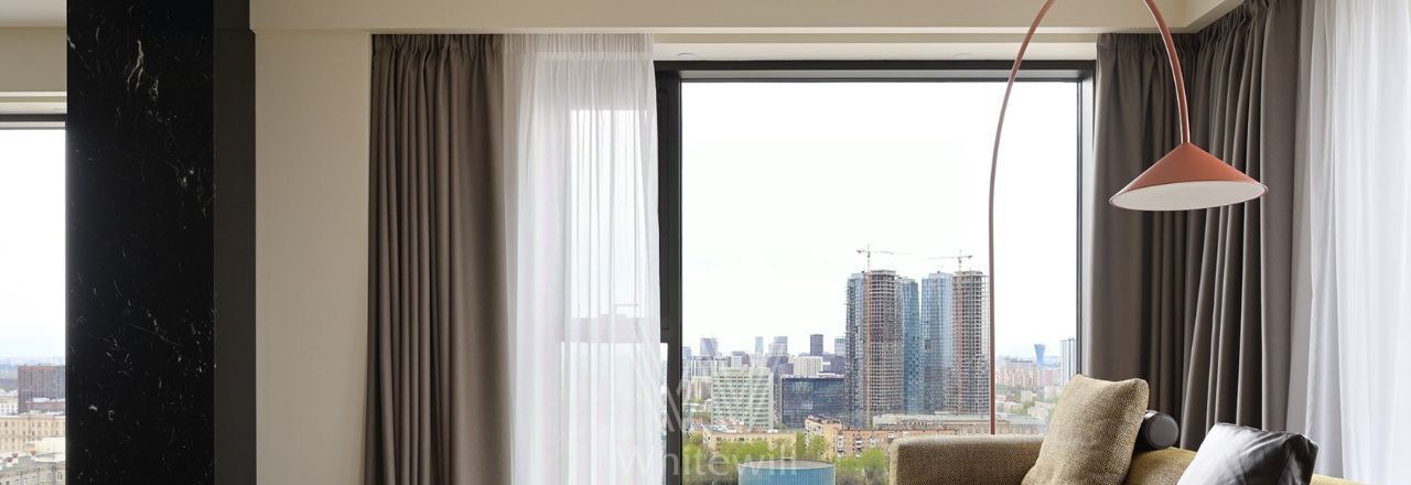 Просторные видовые апартаменты площадью 103 м² в комплексе премиум-класса "Поклонная, 9" рядом с Парком Победы. Дизайн интерьера оформлен в современном стиле в светлых тонах с тёмными акцентами дерева и натуральной кожи. Апартамент полностью укомплектован итальянской мебелью, световые решения из Италии. Панорамные окна в пол, высокие потолки.