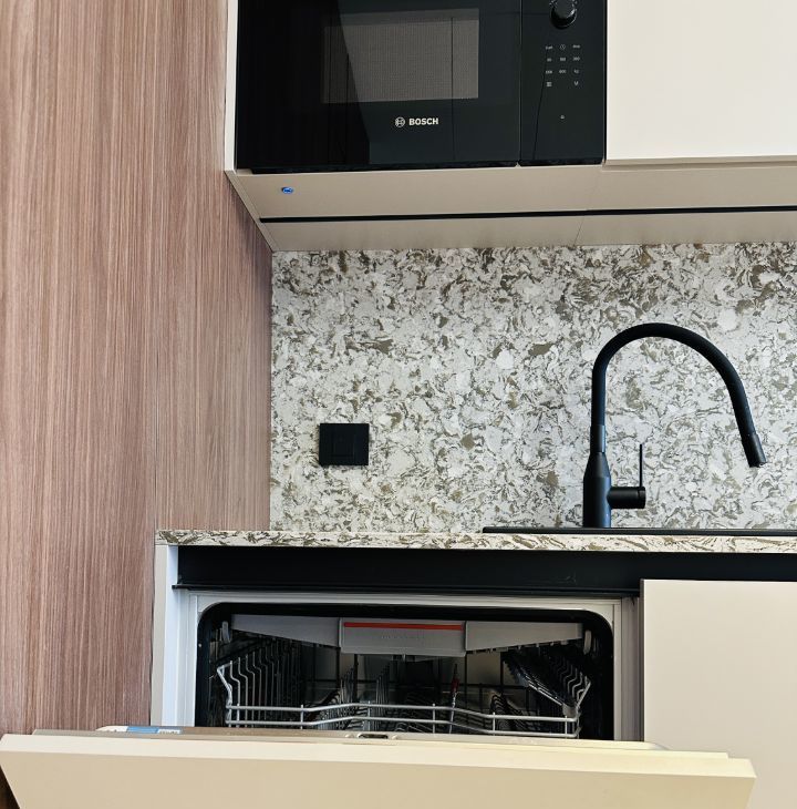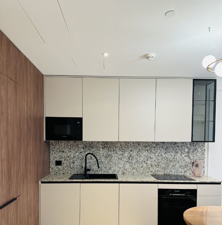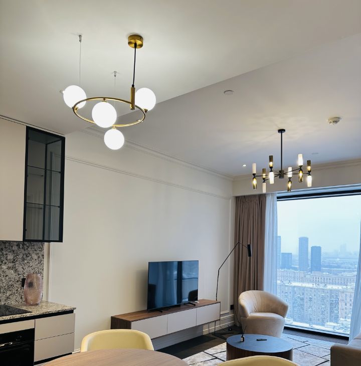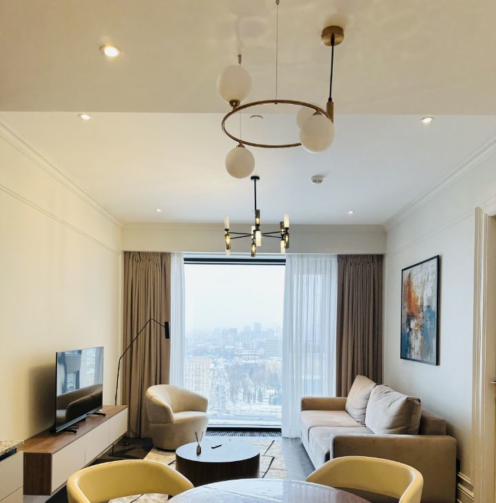 Свежий дизайнерский ремонт. Великолепный интерьер в спокойных светлых тонах, полное оснащение всей необходимой бытовой техникой: 2-спальная кровать, диван, много мест для хранения, встроенная кухня. Коммунальные платежи не включены в стоимость аренды.