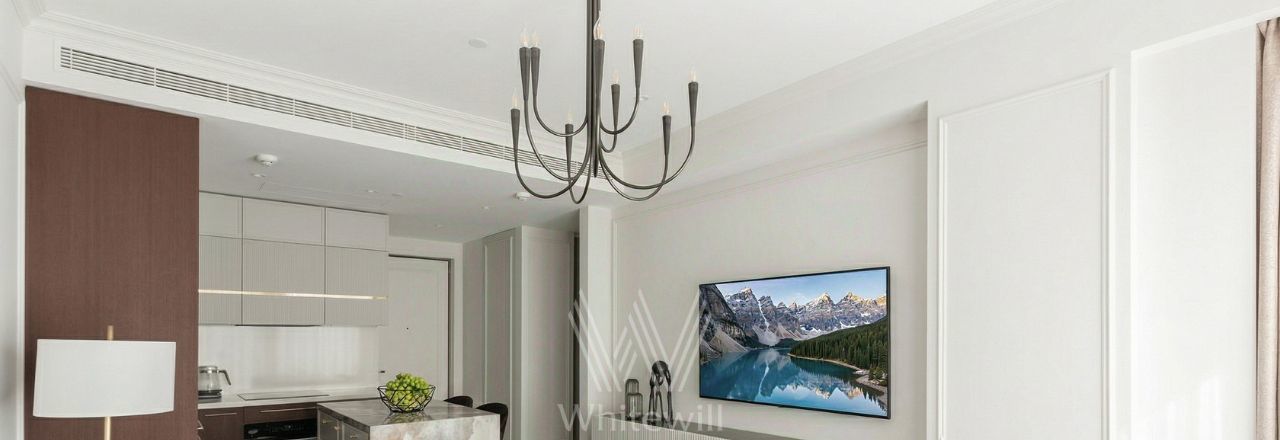 Апартаменты оснащены системой кондиционирования (канальные кондиционеры LG) и напольными конвекторами Varman. Благодаря панорамным окнам и потолкам высотой 3,5 метра пространство наполнено естественным светом и воздухом.