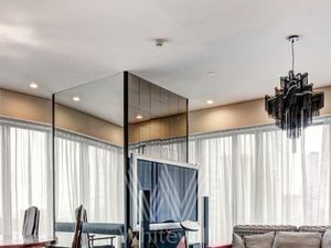 В квартире есть всё необходимое для комфортного проживания: кондиционер, холодильник, посудомоечная машина, телевизор и стиральная машина. Мебель на кухне и в комнате выполнена в современном стиле, поэтому пространство выглядит уютно и продуманно. Совмещённый санузел оборудован душевой кабиной, что добавляет удобства.
