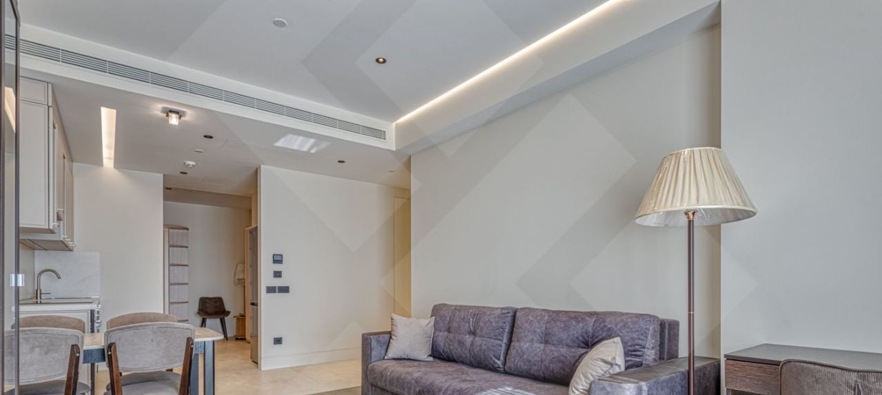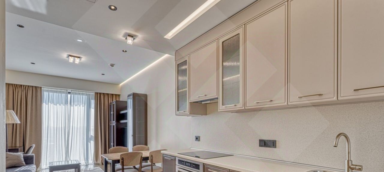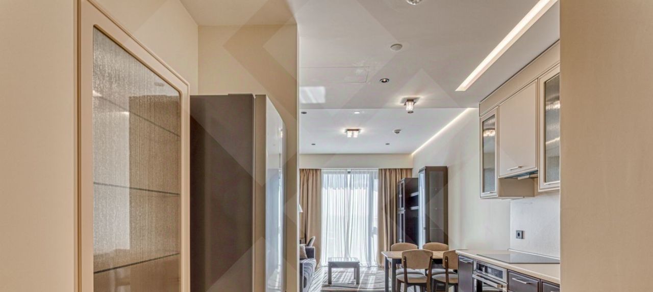 Общая площадь составляет 65 м, выполнена премиальная отделка с использованием высококачественных материалов.