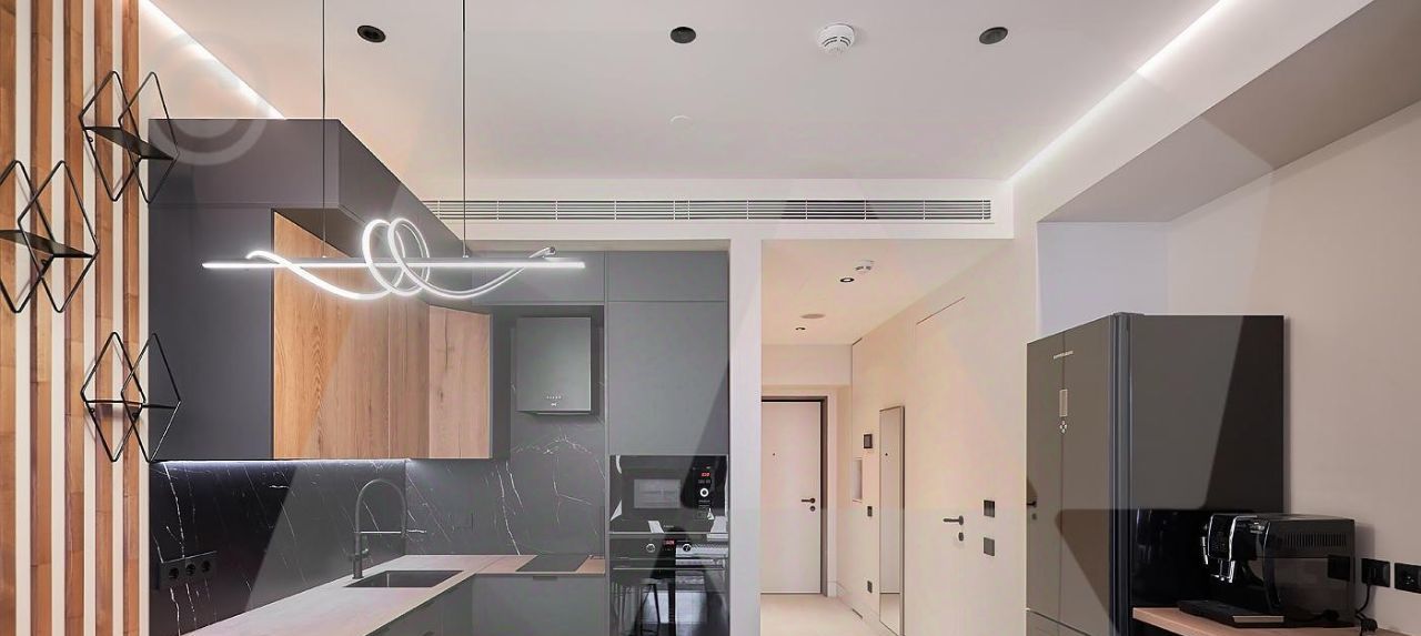 Установлена приточно-вытяжная вентиляция, стиральная, посудомоечная машина. Кухня укомплектована всей необходимой техникой.