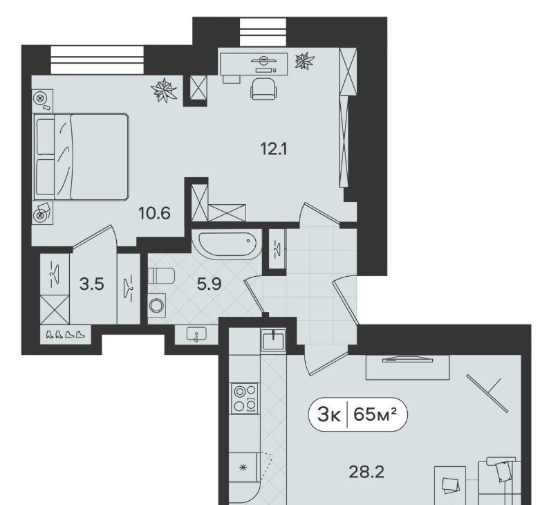 - Большая кухня-гостиная с двумя окнами