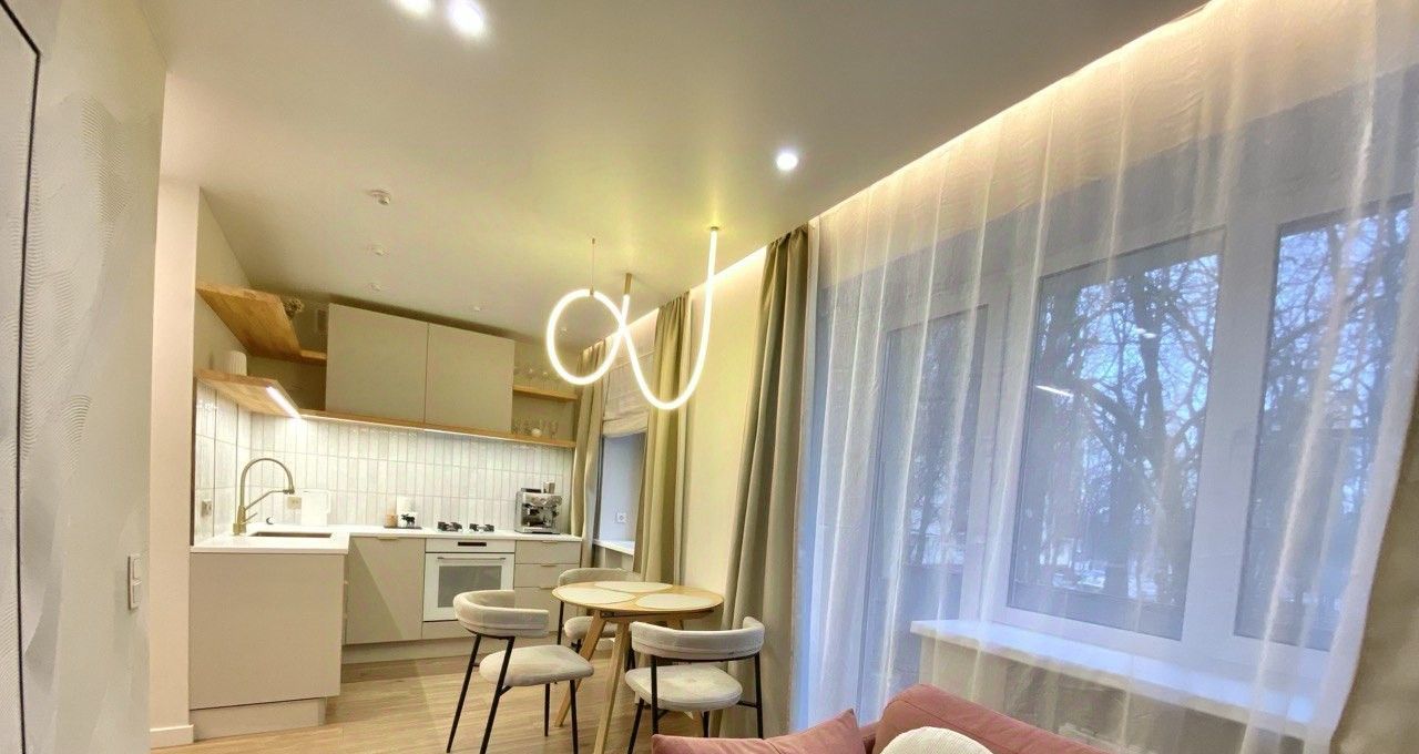 Современная квартира с кухней гостиной и изолированной спальней с евро ремонтом, для людей ценящих приватность и требовательных к пространству и окружению.