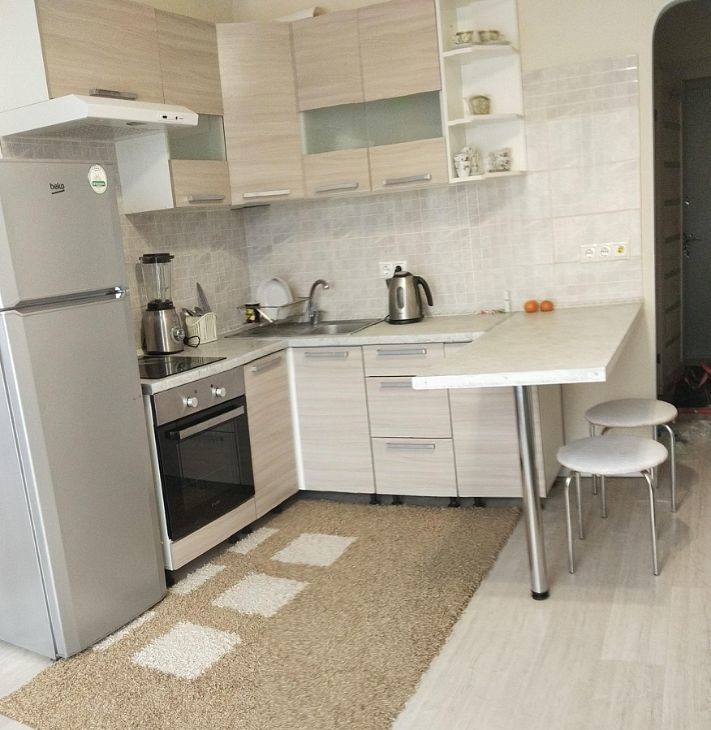 В квартире выполнен современный ремонт, есть вся необходимая мебель: кухня полностью оборудована, в комнате также установлена мебель. Из техники имеются холодильник, посудомоечная и стиральная машины, Духовой шкаф.Просторная ванная комната оснащена ванной.