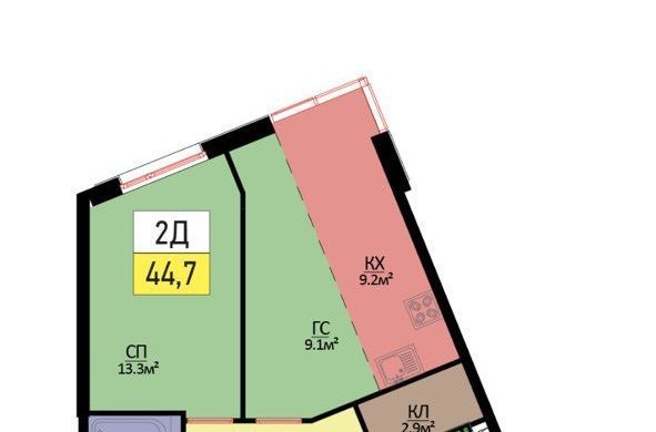2-к кв. Москва пос. Коммунарка, ул. Бачуринская, 11Ак1 (45.4 м²)