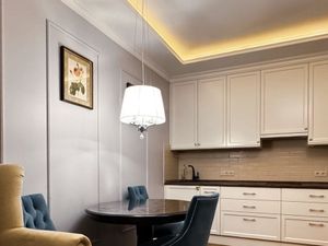 Продуманный дизайнерский ремонт дополнен интересными решениями. Квартира полностью меблирована (много мест для хранения), укомплектована всей необходимой для комфортного проживания техникой и сан.техникой, включая посудомоечную машину, измельчитель пищевых отходов (на кухне), БОЙЛЕР, ДЖАКУЗИ. Установлен дмф.