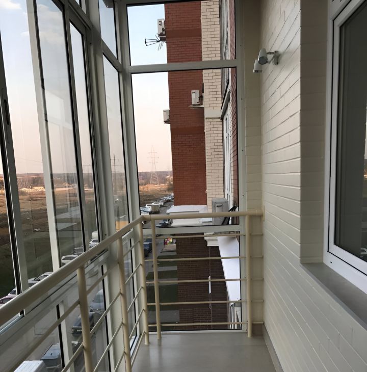 Большой остекленный балкон с выходом из спальни.
