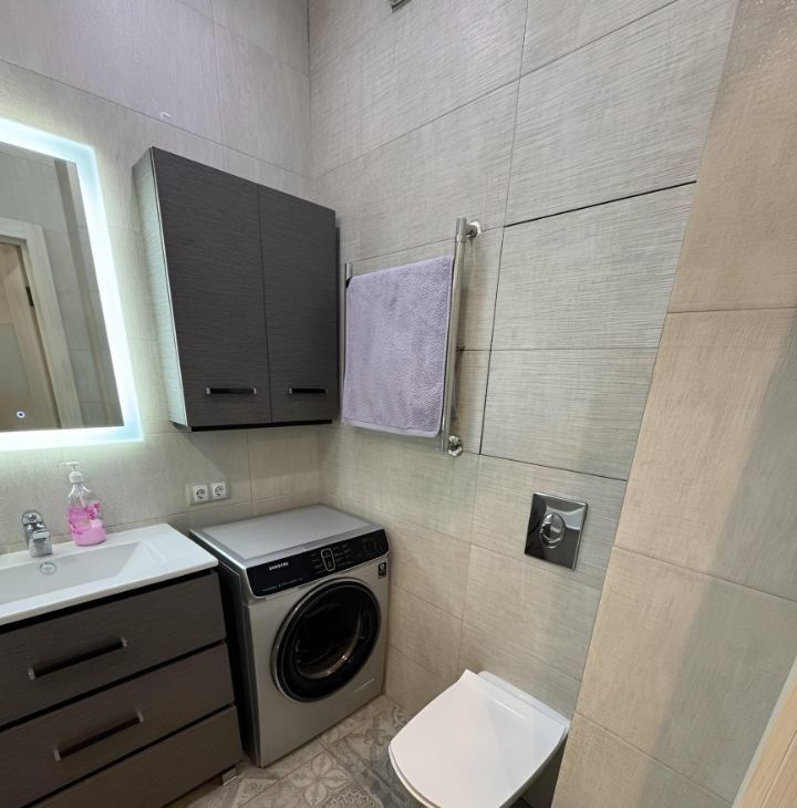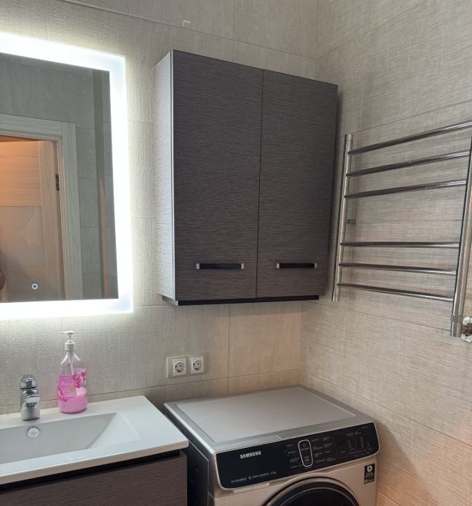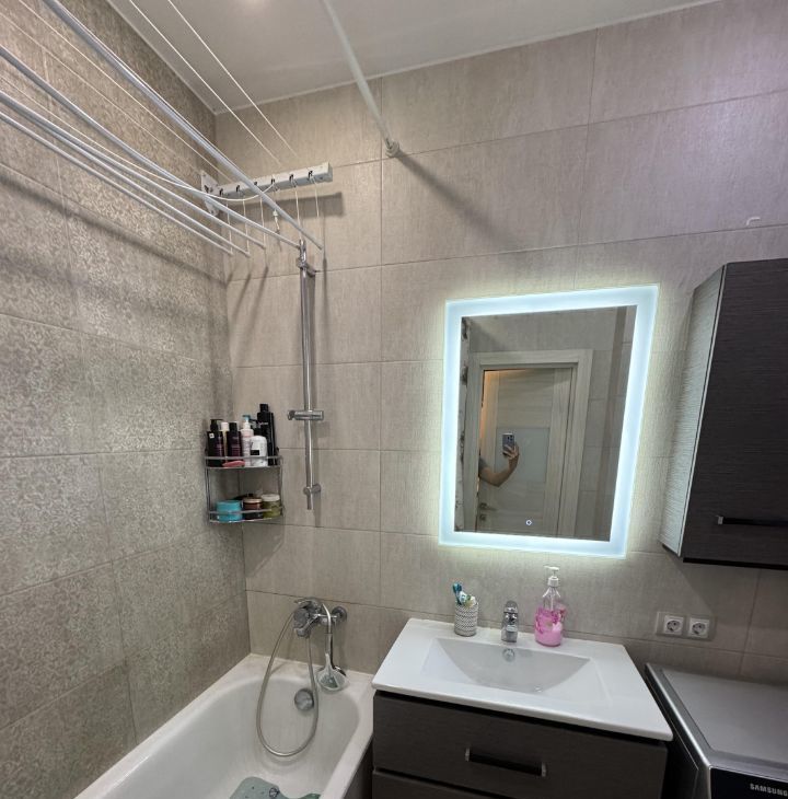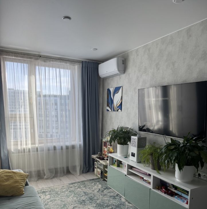 Теплые полы в ванной, умные выключатели по всей квартире, кроме ванной комнаты, розетки с USB. Кондицинер был поставлен в 2024 году, оснащен Wi-fi.