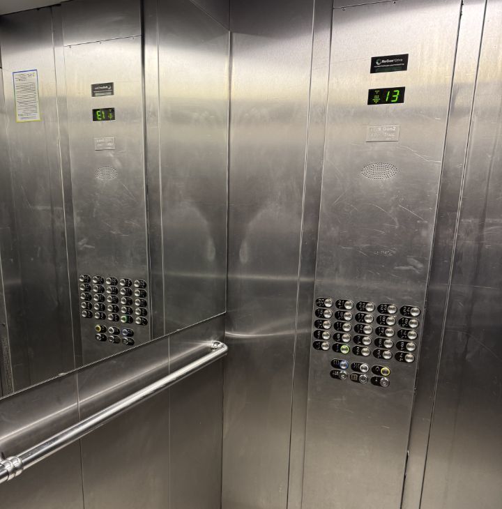 Дом находится в отличном состоянии, оснащен 2 пассажирскими и 1 грузовым лифтом, имеются кладовки на -1 этаже, в подъезде круглосуточная охрана.
