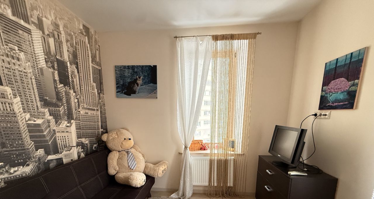 В квартире сделан качественный евроремонт. Здесь есть всё необходимое для комфортного проживания: холодильник, телевизор и стиральная машина. Кухня и комната обставлены мебелью. Планировка квартиры продумана до мелочей, а окна выходят на улицу, что делает её светлой и уютной. В ванной комнате установлена большая ванна, совмещённый санузел обеспечит дополнительное удобство.
