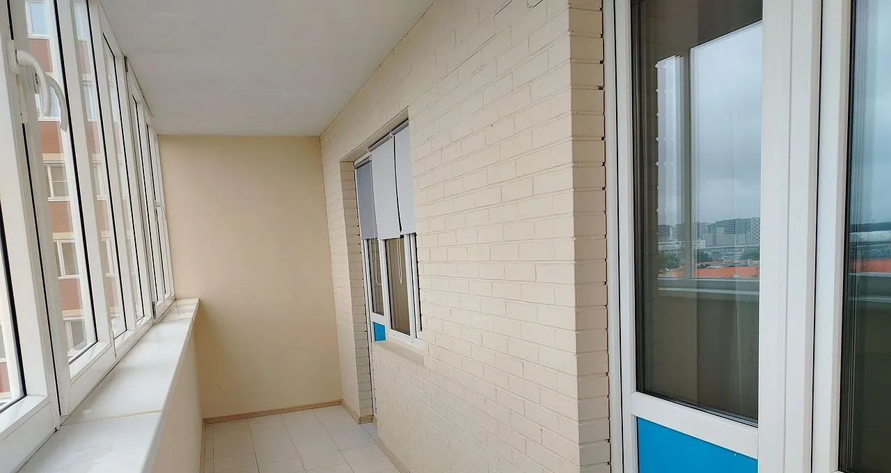 Лоджия 10м² (лeнтoчнaя, застeклённaя, ширoкaя, с двумя выхoдaми из кoмнаты и из кухни).