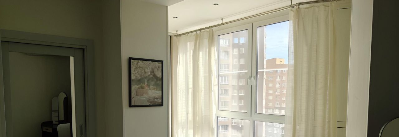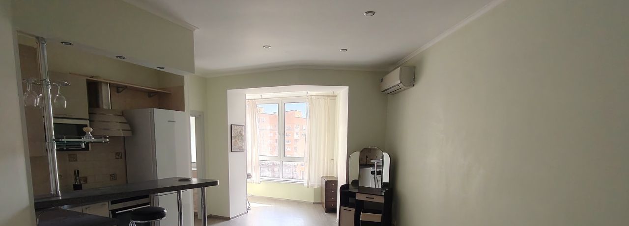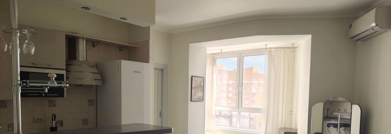 Квартира сдается впервые, хороший современный уютный ремонт, огромная кухня-гостиная и спальня, а также очень большая лоджия, в которой можно организовать рабочую зону. Квартира солнечная, установлен кондиционер, вся техника отличная, не Китай, качественная функциональная мебель. В спальне двуспальная кровать, в гостиной раскладывающийся диван, несколько зон хранения одежды, красивая, надежная входная дверь.