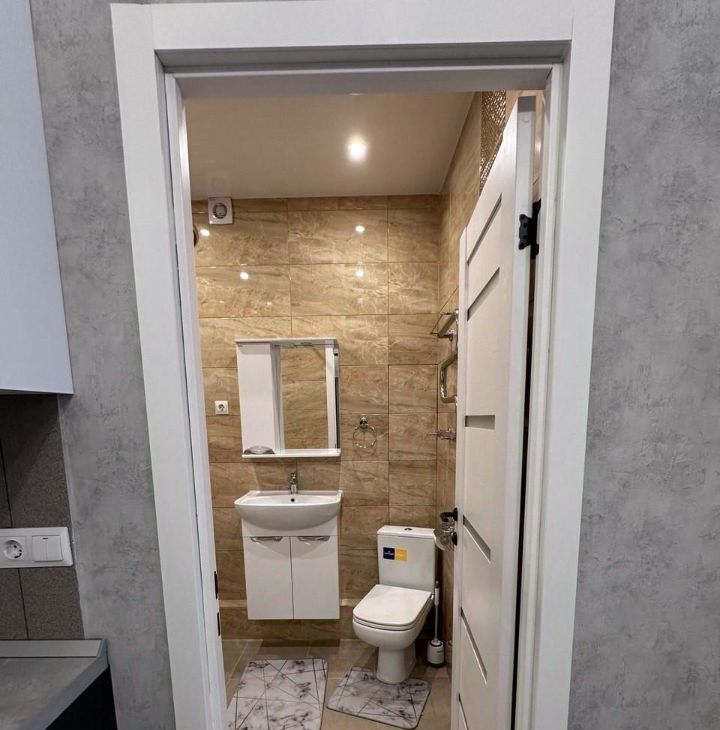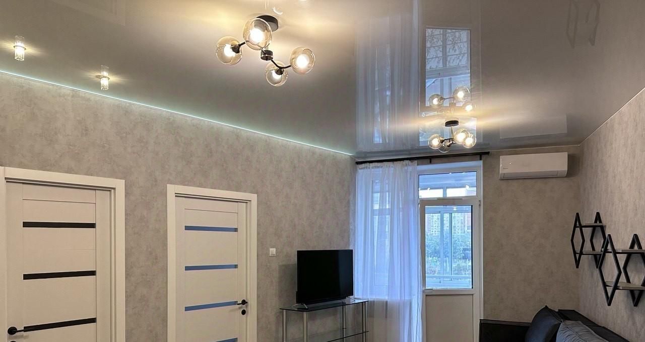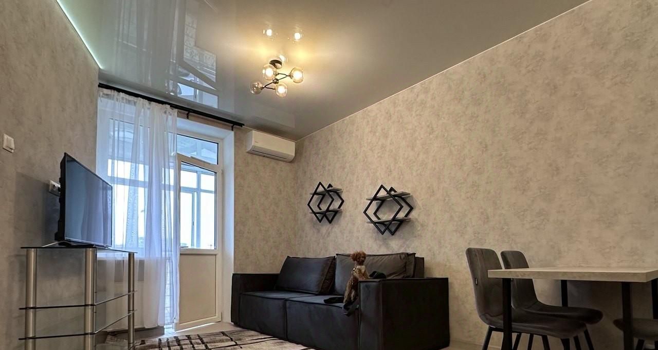 Квартира полностью готова к проживанию: в комнатах и на кухне есть вся необходимая мебель. В квартире установлен кондиционер, также в наличии холодильник, посудомоечная и стиральная машины, телевизор. Просторная ванная комната оборудована ванной. Санузел совмещённый. Есть лоджия для хранения вещей и отдыха.