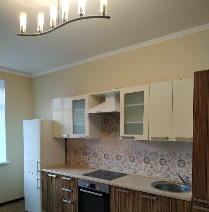 Минимум мебели (в коридоре шкаф-купе и в спальне 3-створчатый шкаф). Бытовая техника (ПММ, 2-х камерный холодильник, стиральная машинка автомат), современный кухонный гарнитур под единой столешницей, духовка, варочная панель, вытяжка. Полы паркет + плитка, окна ПВХ,есть балкон , остеклен, входная металлическая дверь.