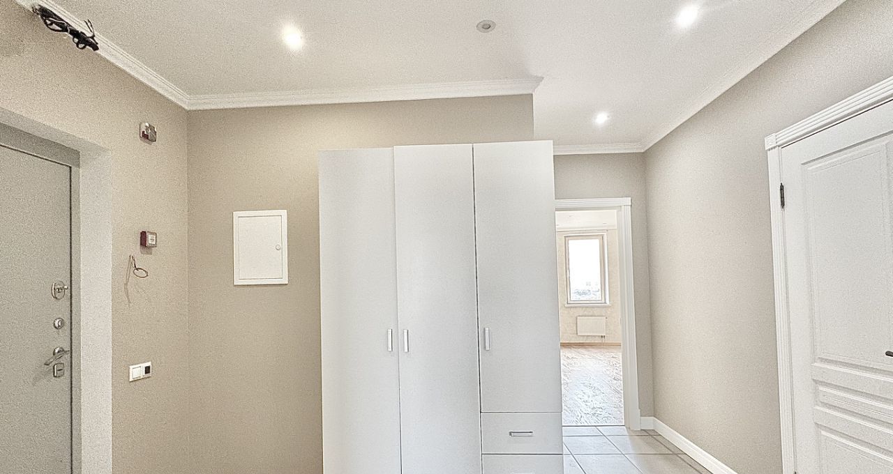 Квартира выполнена в светлых, нейтральных тонах с качественным ремонтом.