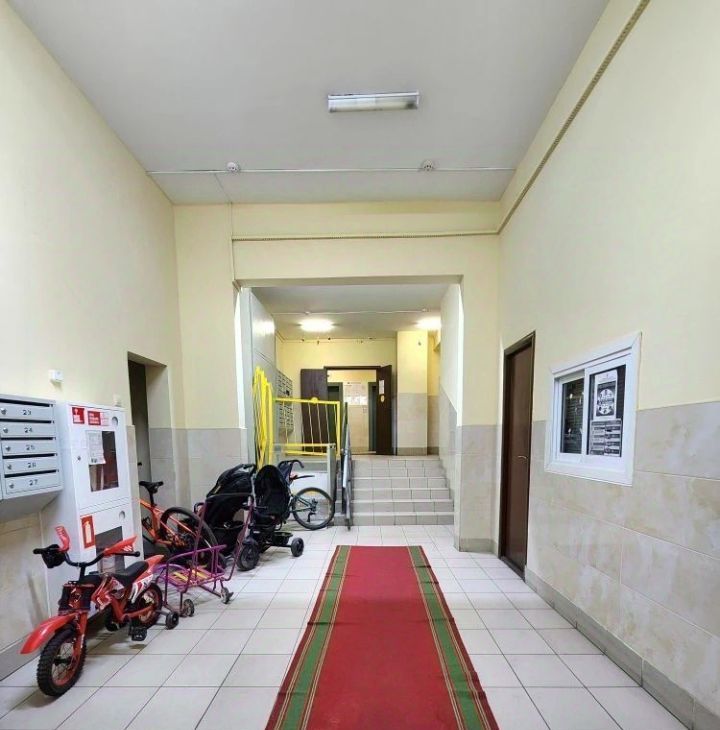 Дом находится в отличном состоянии, подъезд чистый и ухоженный. На территории предусмотрена наземная парковка, шлагбаум. Для удобства жителей в доме работают пассажирский и грузовой лифты.
