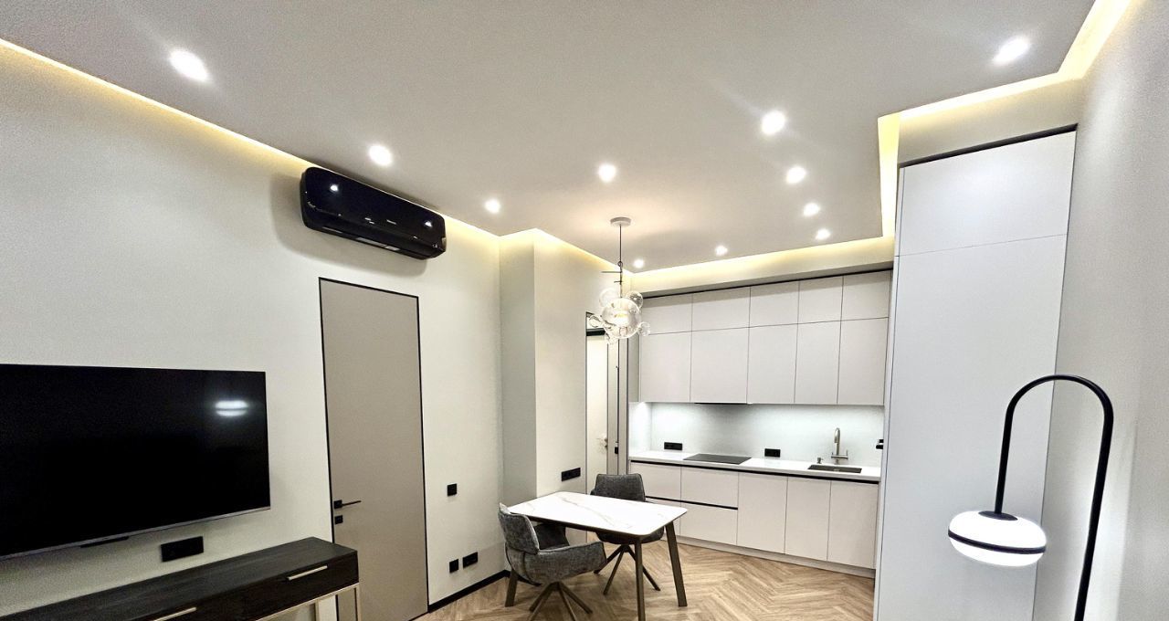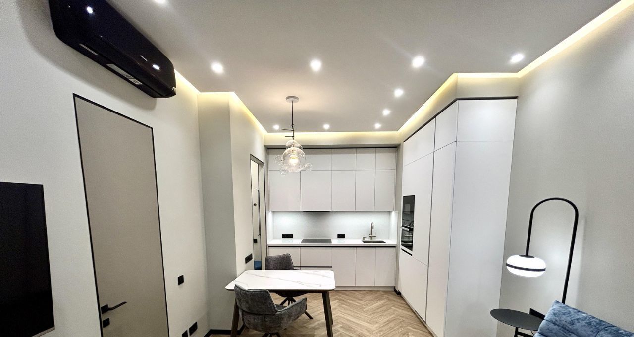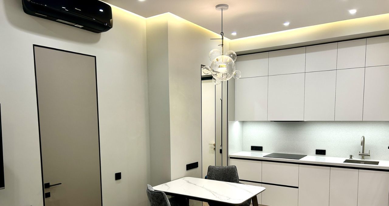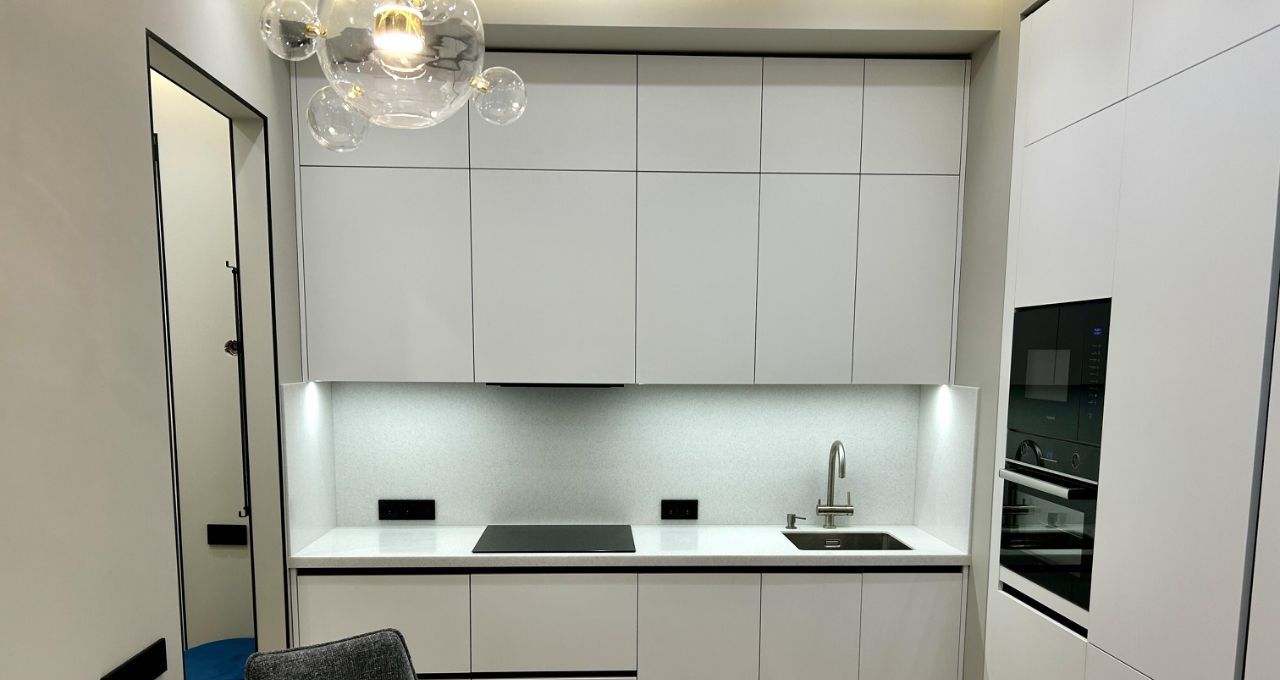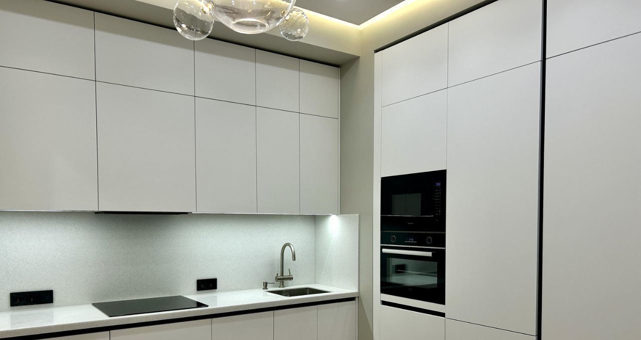 - Кухня с встроенной техникой и посудомоечной машиной.