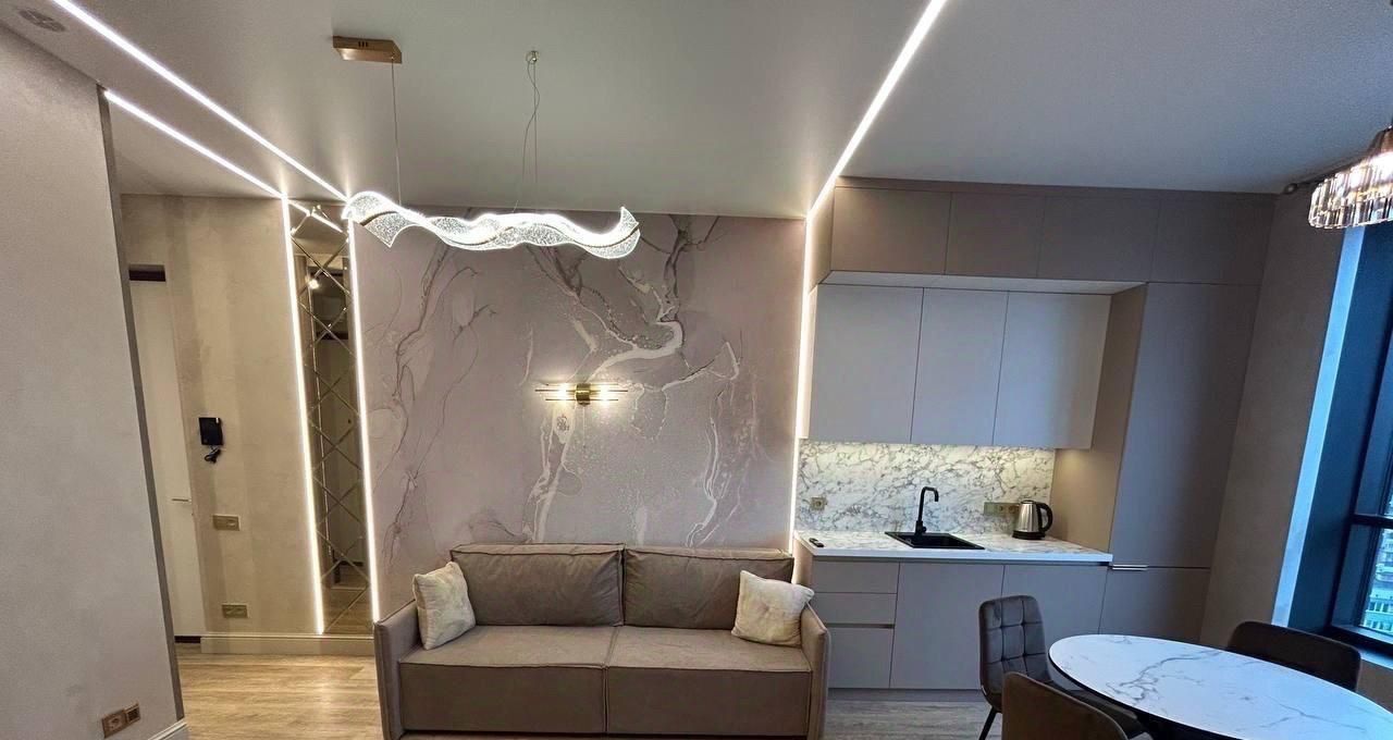 В квартире сделан дизайнерский ремонт, есть все необходимое: 2 телевизора с функцией smart tv, кондиционер, холодильник, электрическая плита, духовой шкаф, посудомоечная машина, стиральная машина, пылесос, СВЧ-печь. Комфортно, тепло, чисто, красиво, для любителей хороших условий проживания. В доме есть консьерж-сервис, охрана, подземный паркинг, детская игровая площадка, спортивная зона внутри двора. На первом этаже - кафе, магазины, ozon и т.д.