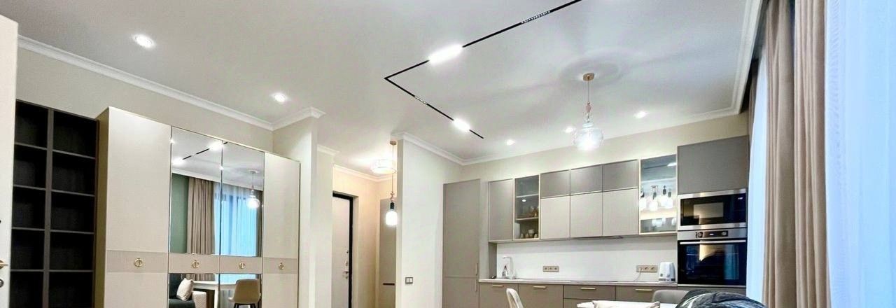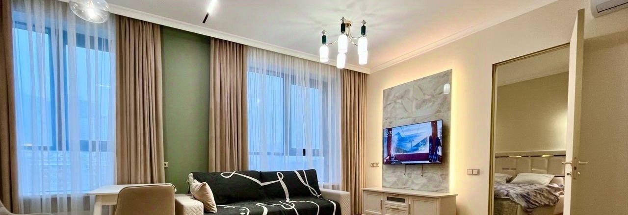 Современный готовый ремонт: Светлая отделка в нейтральных тонах, высококачественные материалы. Идеальное состояние, готово к заезду.