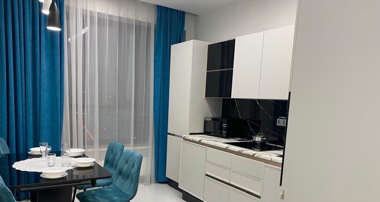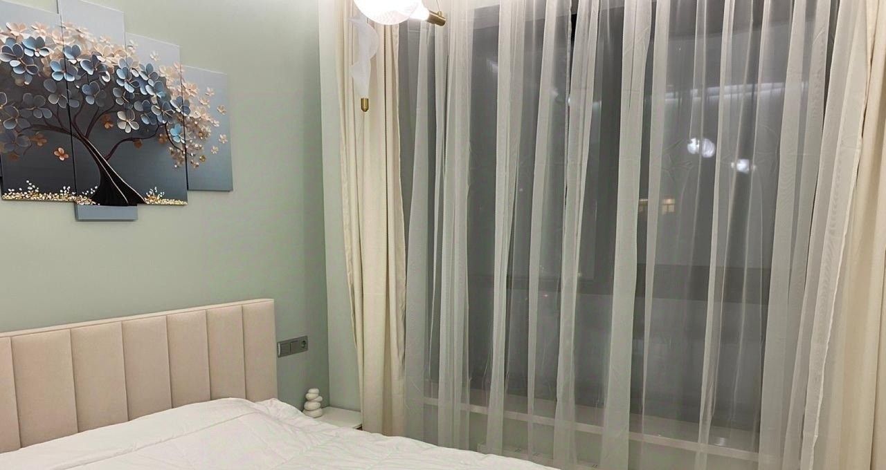 Объект расположен на 15-м этаже 30-этажной монолитно-кирпичной новостройки 2024 года, что гарантирует высокий уровень шумоизоляции и надежности. Пространство площадью 50 м² с дизайнерским ремонтом продумано до мелочей: просторная гостиная-спальня, отдельная кухня и совмещенный санузел с ванной. Панорамные окна с видом на город и двор обеспечивают обилие естественного света и создают ощущение простора. Квартира полностью укомплектована всей необходимой техникой и мебелью премиум-класса: кондиционер, стиральная и посудомоечная машины, телевизор, холодильник, а также кухонный гарнитур и мебель в жилых комнатах.