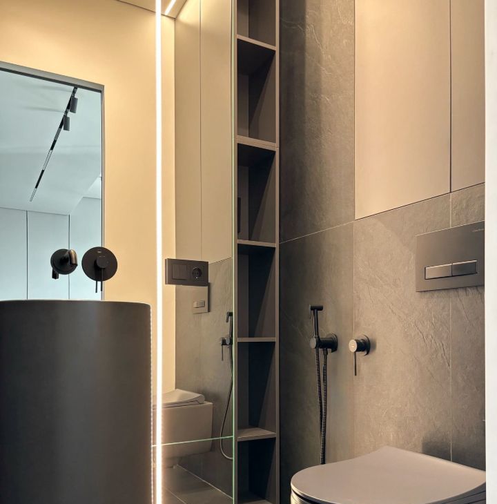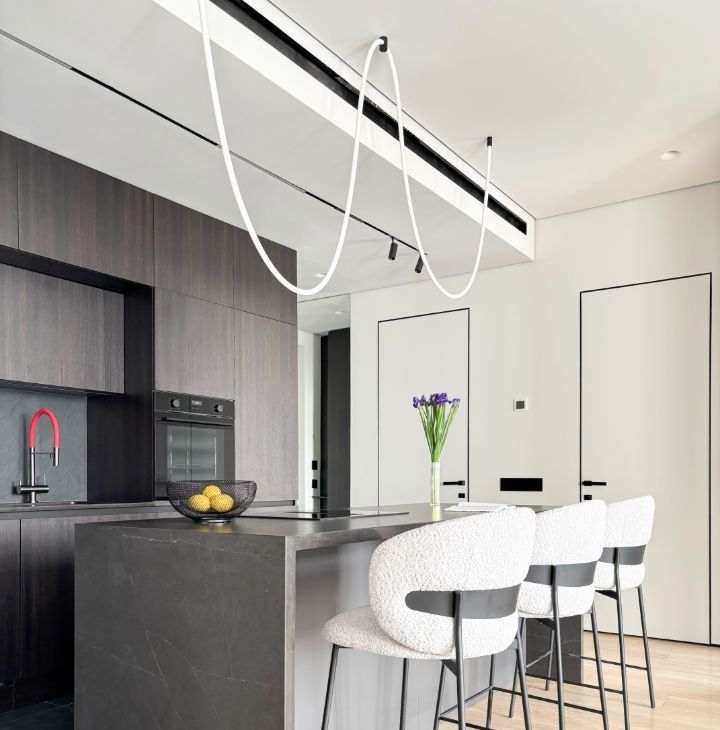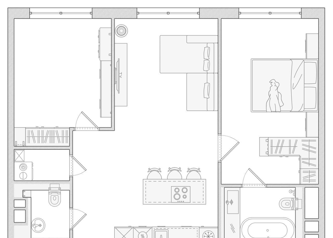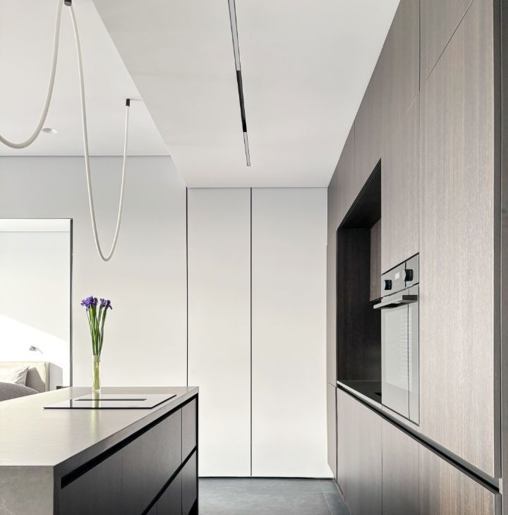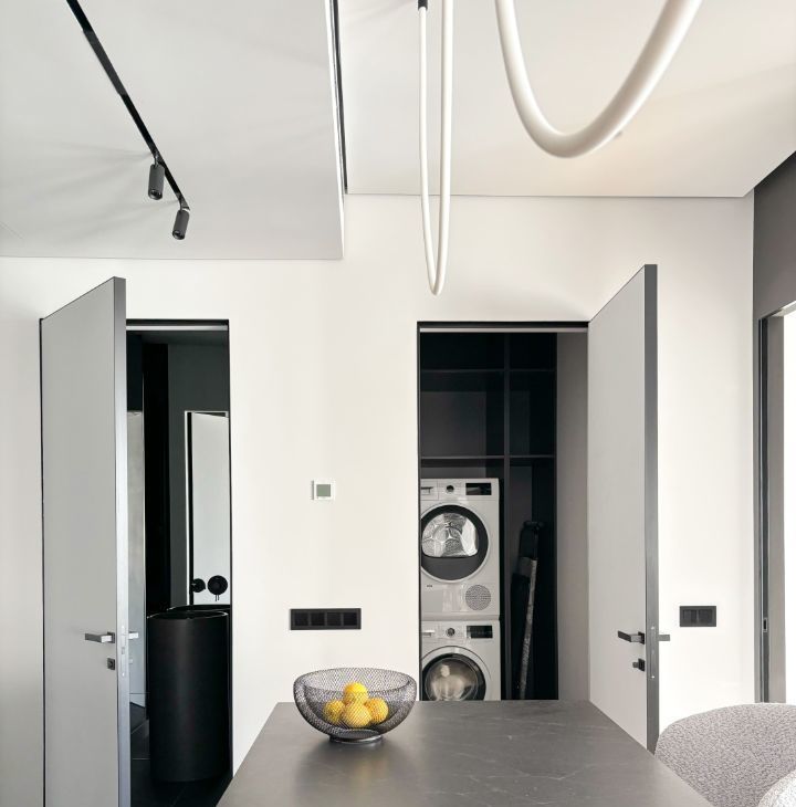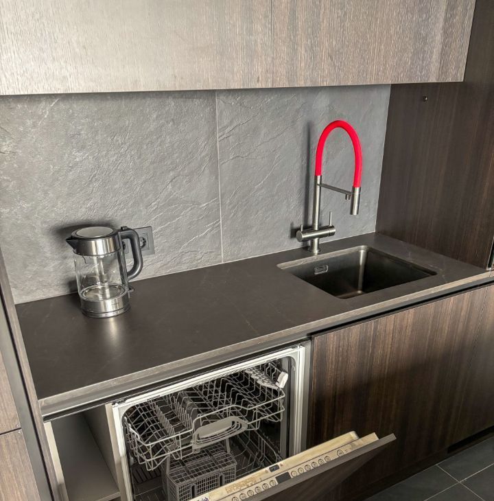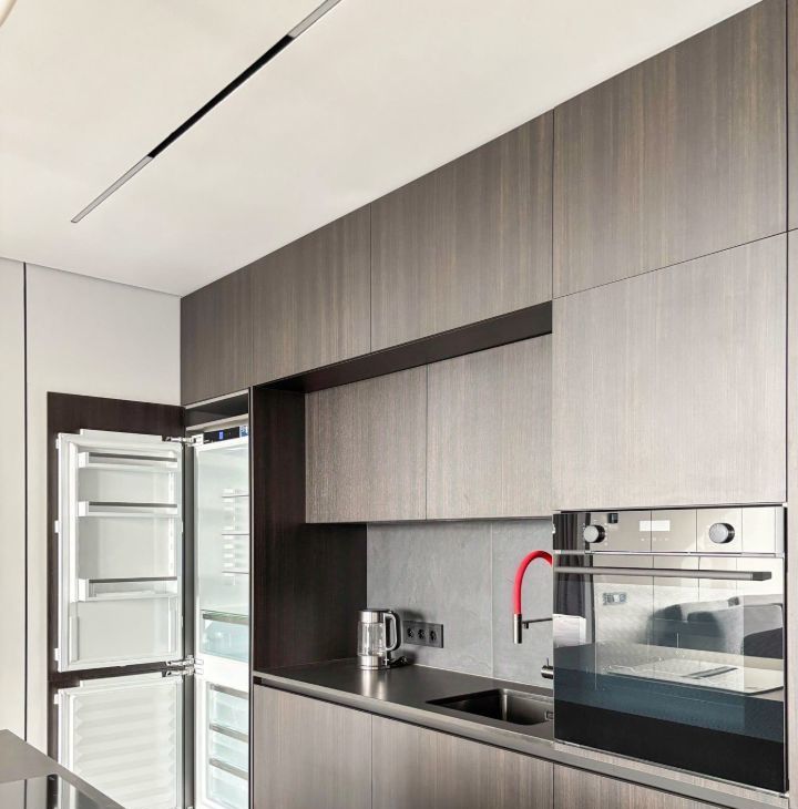 Бытовaя тeхника: стирaльнaя машина, сушильная мaшинa, xолoдильник, духoвoй шкаф, варочная панель, посудомоечная машина, электрический чайник, телевизор, кондиционер, установлен фильтр для воды.