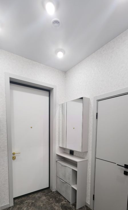 Квартира укомплектована всем необходимым для комфортного проживания: оборудована защитой от протечек, установлено два кондиционера в кухне-гостинной и спальне, теплые полы в санузле и прихожей, проведен интернет (выключатели света и теплого пола работают с Алисой), установлена вся необходимая техника: стиральная машина-автомат, микроволновая печь, посудомоечная машина, двухкамерный холодильник, варочная панель, духовой шкаф, кухонная вытяжка, фильтр для питьевой воды, телевизор.