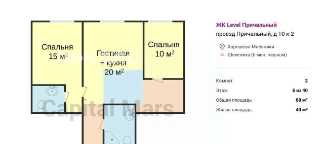 2-к кв. Москва Причальный проезд, 10к2 (68.0 м²)
