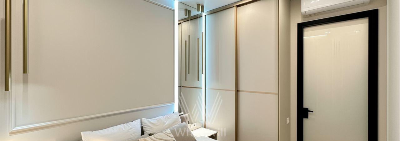 Квартира с двумя спальнями общей площадью 68 м² в комплексе бинес-класса Level Причальный на шестом этаже. Выполнена дизайнерская отделка в современном стиле. Интерьер оформлен в лаконичных светлых тонах. Спланирована кухня-гостиная с обеденной зоной, мастер-спальня с собственным санузлом, вторая спальня, гардеробная, гостевой санузел, прихожая. Квартира полностью меблирована и оборудована бытовой техникой. Из окон открывается вид на улицу.