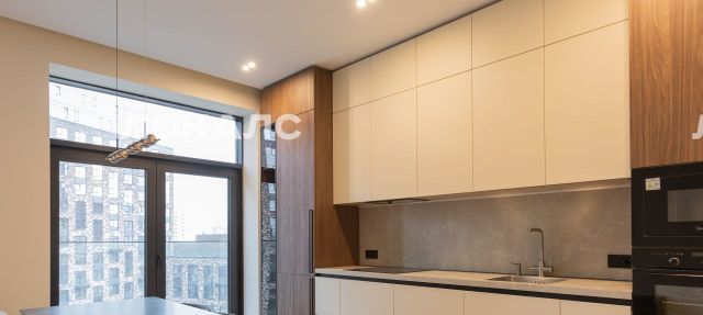 В квартире светлая кухня-гостиная с двумя окнами, просторная мастер-спальня, вторая комната для детской или кабинета и два санузла - с ванной и душевой кабиной. Установлена вся необходимая техника: 3 кондиционера, посудомоечная машина, духовка, микроволновка, вытяжка, холодильник, телевизоры, а также комфортные теплые полы.