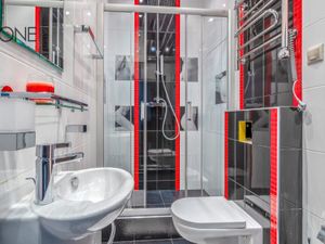 В квартире произведена качественная отделка, а внутри вы найдете всю необходимую мебель, что позволяет сразу же заселиться и чувствовать себя как дома. Планировка квартиры включает отдельную спальню площадью 20 м2, отдельный гардероб, два сан узла (С душевой кабиной и ванной) и просторную кухню-гостиную.
