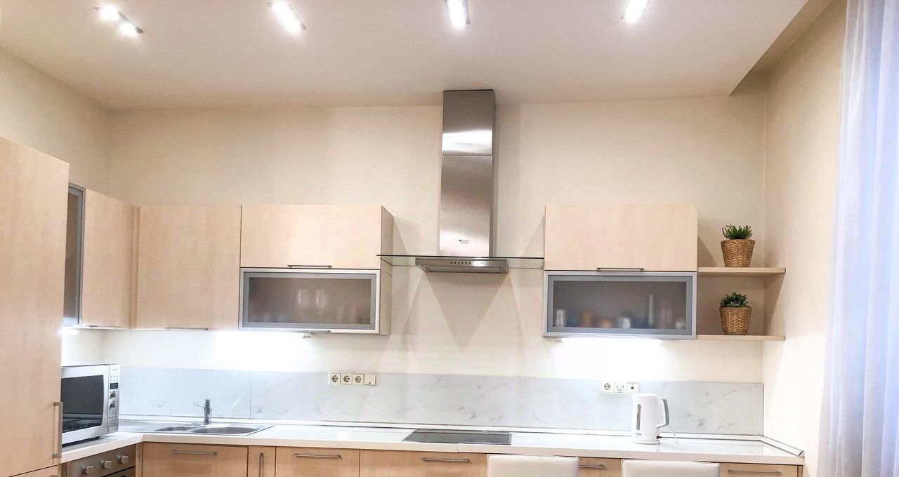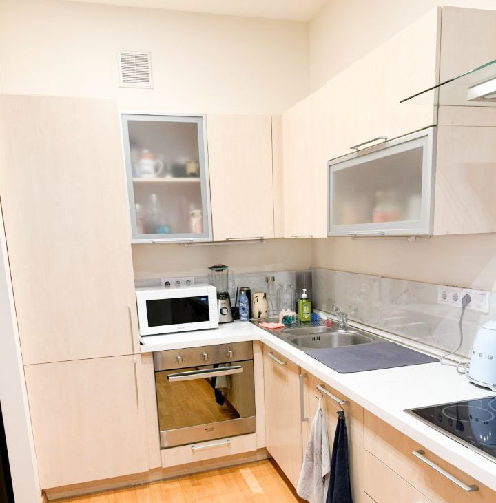 Квартира полностью меблирована и оснащена всей необходимой бытовой техникой: духовка, микроволновая печь, варочная панель, TV, стиральная машина, холодильник.